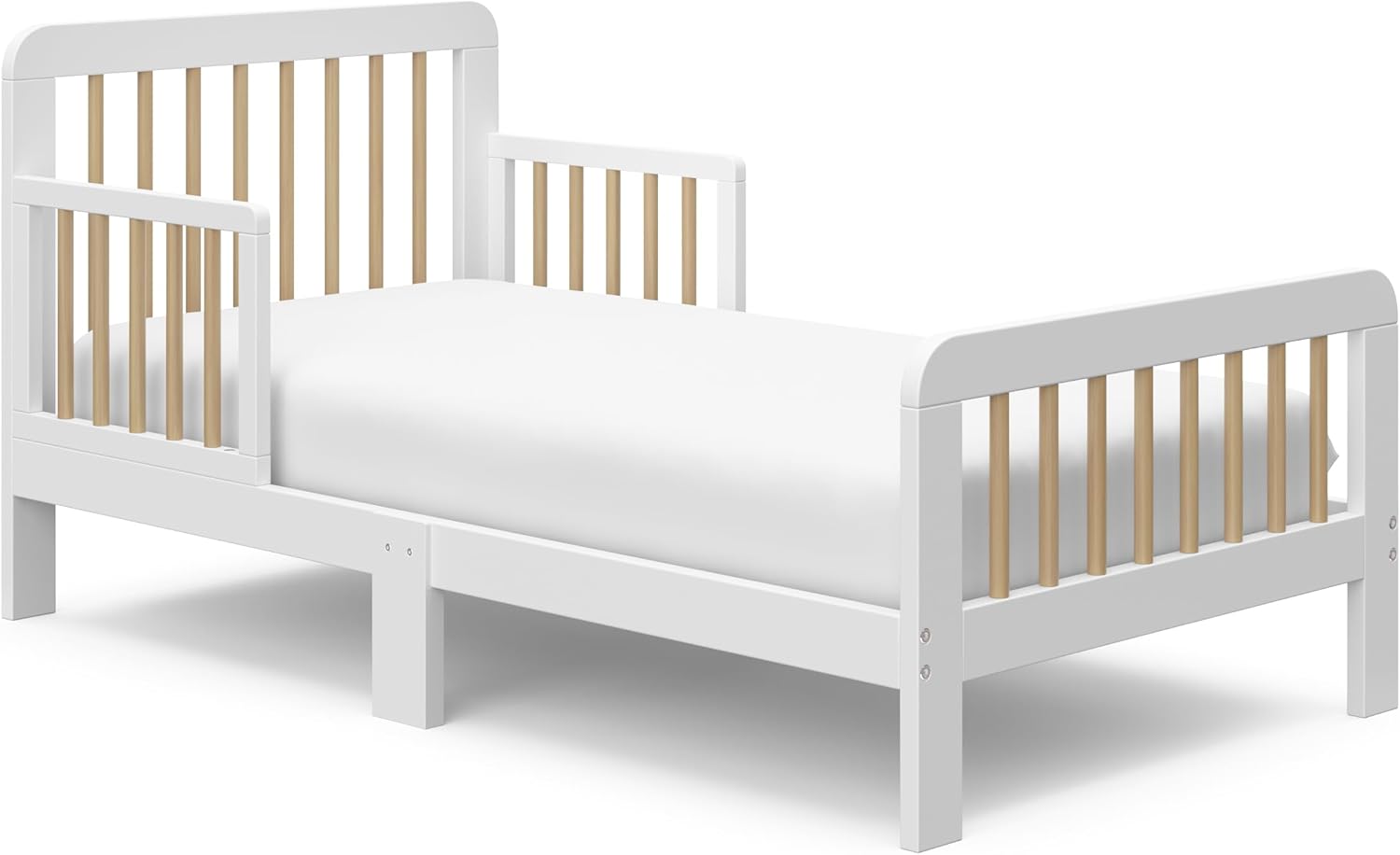 Bringing clean lines and a modern, Californian design to your kids bedroom, our Storkcraft Pasadena™ Toddler Bed is the perfect pick for a smooth and stylish transition from the crib to your child’s first “big kid” bed . The Pasadena is crafted from pine wood and engineered wood, and its applied finish has been tested to meet or exceed the applicable ASTM and CPSIA safety standards. The Storkcraft Pasadena Toddler Bed is JPMA Certified — meaning it’s been expert tested by third-party, accredited laboratories to meet or exceed all of the applicable category voluntary and mandatory safety standards. For your toddler’s added security, the Pasadena is equipped with toddler safety guardrails on each side of the bed. The Pasadena is designed to fit any standard full-size crib and toddler mattress (we recommend any Graco toddler mattress). Storkcraft is the proud recipient of the Parent Tested Parent Approved (PTPA) Seal of Approval for nursery and children’s bedroom furniture, the 2023 PTPA Top Product Award, and the 2018-2023 Women's Choice Award for 9 out of 10 Recommended Baby & Kids Furniture. Backed by a 1-year limited manufacturer’s warranty. Assembly required. Toddler mattress sold separately. Toddler safety guardrails included.