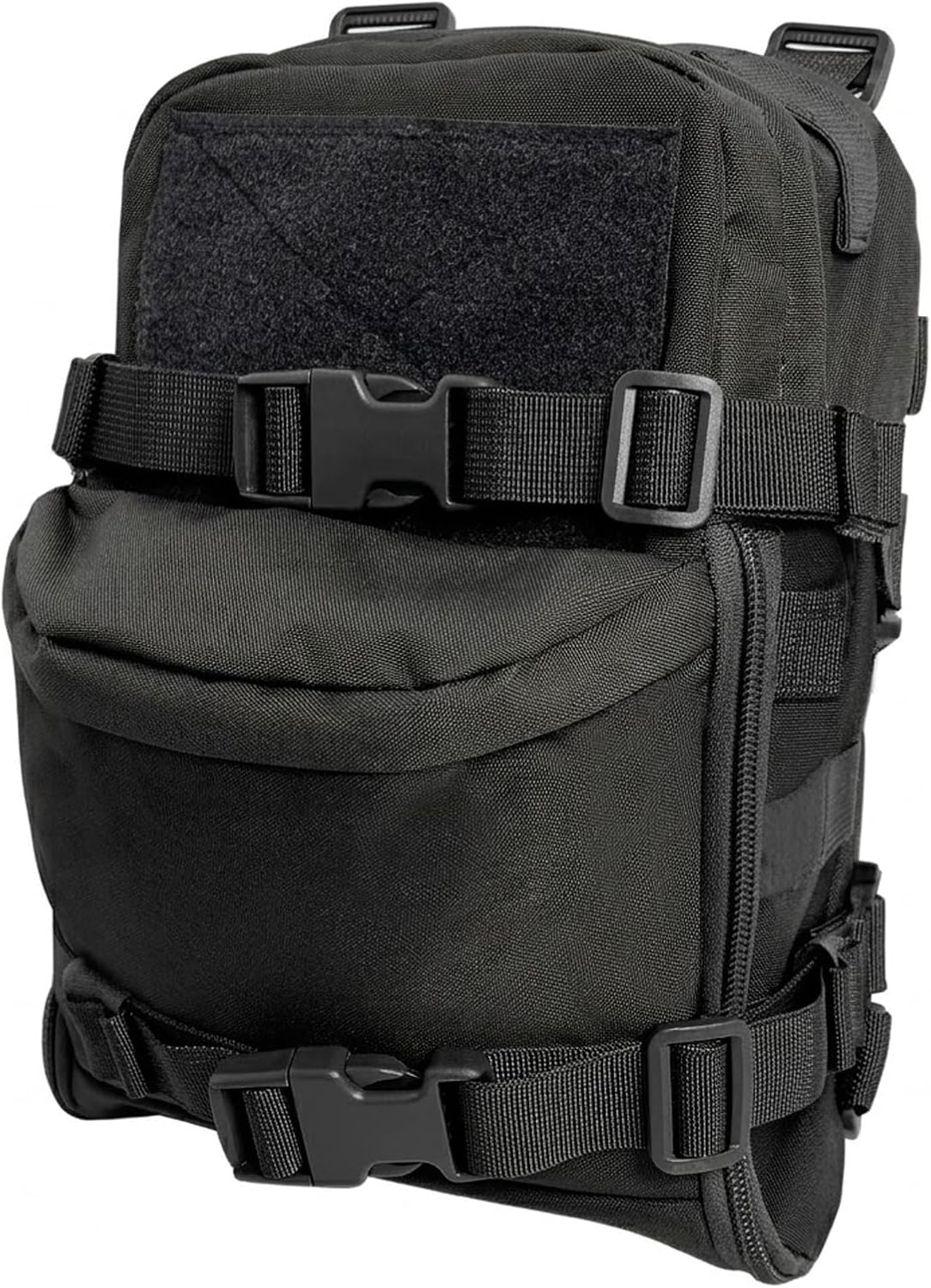• 【500D Material Hydration Backpack】The Molle Hydration Backpack is made of 500D Nylon material with high durability, wear resistance, waterproof and quick-drying fabric. The hydration water bag suitable for 2L water bladder has nylon webbing handle, YKK rope zipper, sturdy tough buckle, magic sticker panel, which is suitable for hiking, running or climbing.