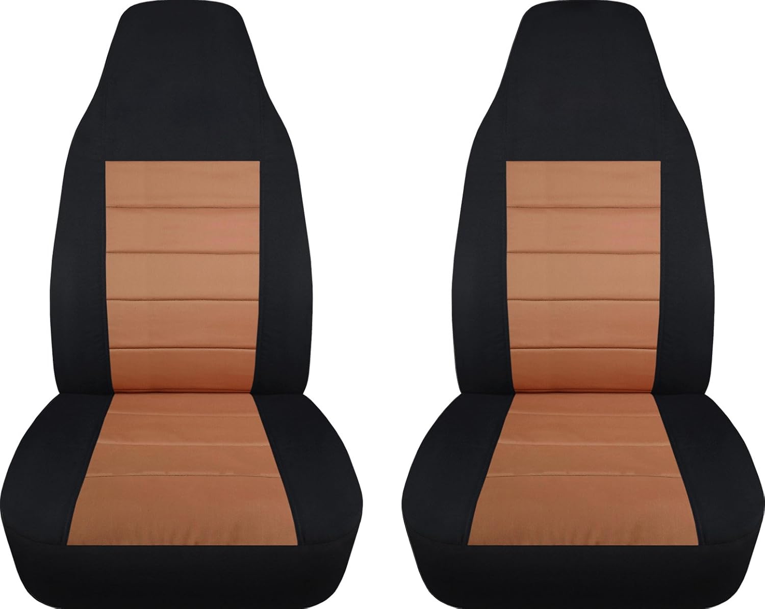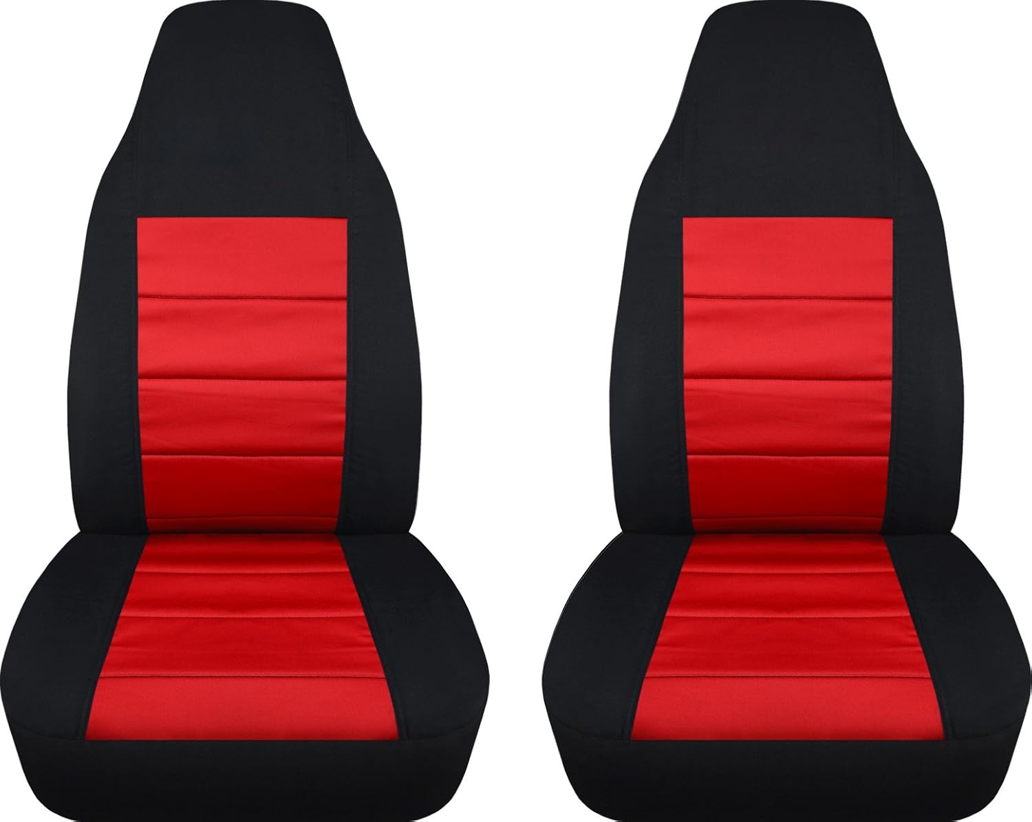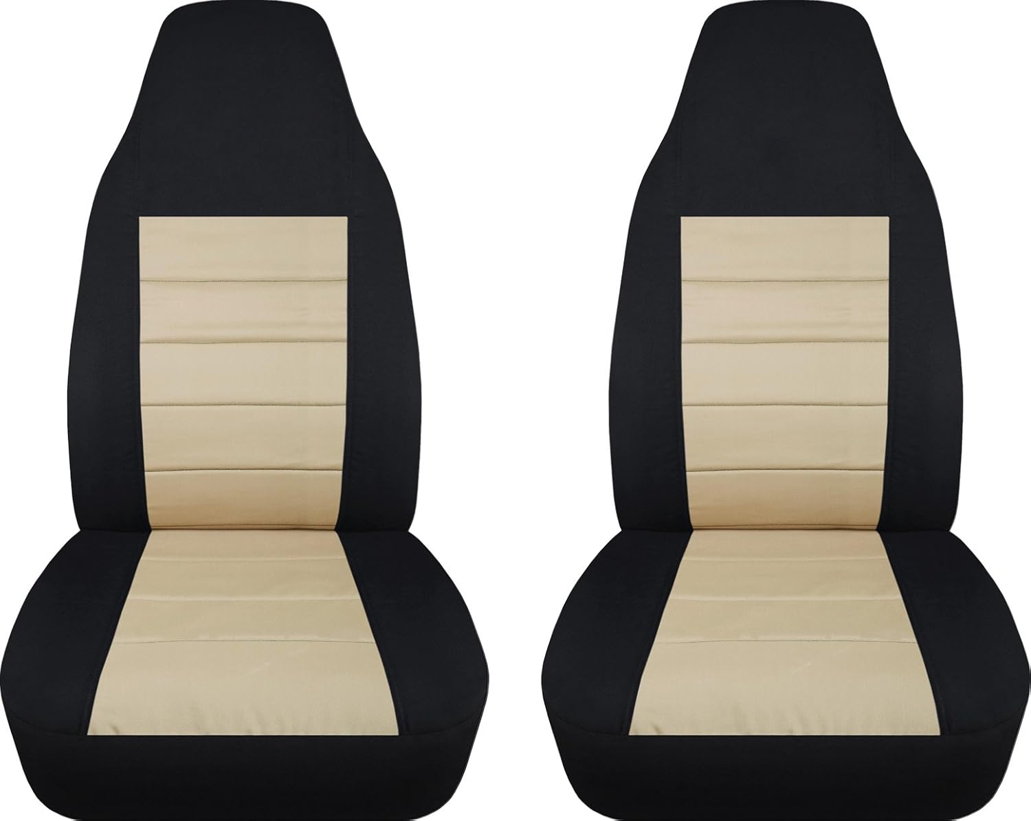 A set of 2, front, black and lime green, universal fit car seat covers. Be sure to visit our storefront ("Totally Covers") where you can find the largest selection of seat covers, to satisfy even the most demanding of tastes. If you can't find what you are looking for, please contact us ("Totally Covers") We can make seat covers for ANY car, truck, van, RV or SUV in a variety of 145 colors and prints, and even add your name/text and logo/design on them!