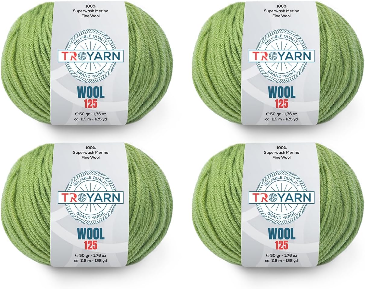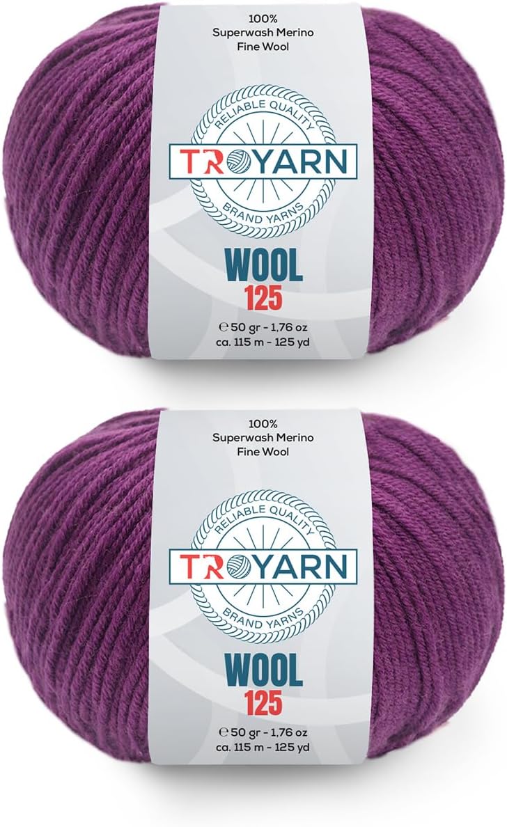 Troyarn Wool 125 is a luxurious yarn crafted from 100% Superwash Merino Fine Wool, offering an exceptional combination of softness, warmth, and breathability. Its worsted weight (#3) structure makes it incredibly versatile — suitable for a wide range of knitting and crochet projects. Each skein includes 125 yards (1.76 oz / 50g) of soft, machine-washable wool. Whether you're creating a handmade gift or designing your next wearable piece, this yarn delivers professional-quality results with minimal effort. Choose between 2-pack (250 yds) or 4-pack (500 yds) options based on your project size. Troyarn Wool 125 glides smoothly, resists splitting, and holds its color and shape even after repeated washing. Perfect for sweaters, scarves, mittens, baby clothes, and more — Troyarn Wool 125 combines performance and beauty in every stitch.