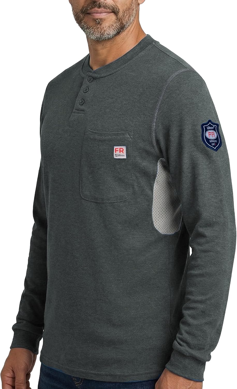 Ubon fr shirts for men are designed for hardworking professionals, combining lightweight comfort with top-tier safety performance—ideal for those seeking lightweight fr shirts that don’t sacrifice protection. Crafted from 5.5oz 100% Cotton Jersey fabric, these mens long sleeve tee shirts style FR shirts offer exceptional softness and breathability, standing out from traditional heavy workwear. Equipped with strategic Underarm Mesh Panels, this fire resistant clothing delivers enhanced airflow, keeping you cool even on the hottest summer workdays and solving the common pain point of stuffiness in FR garments. Certified to NFPA 2112, NFPA 70E, and ASTM F1506 standards, it’s rated as CAT2 work clothing (HRC2) with an ATPV value of 8.0-8.9 cal/cm², providing reliable flame resistance you can trust. Processed with Preshrunk technology, these frc shirts for men are guaranteed to maintain flame retardant performance after 100 washes, built for long-lasting durability and eliminating worries about shrinkage or reduced safety over time. Perfect for industrial, construction, and electrical work, Ubon FR shirts blend safety, comfort, and functionality to keep you protected and comfortable all shift long.