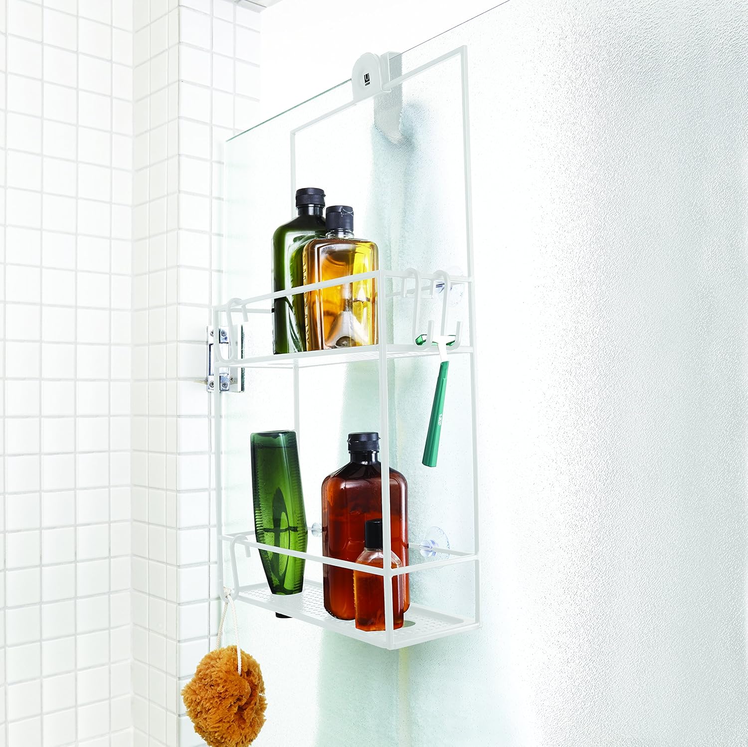 No one wants their shower caddy slipping down, moving around, or running out of storage space. With this smart and stylish shower caddy from Umbra, we’ve got you covered. This durable caddy will stay put and help you stay organized.Introducing Cubiko Shower Caddy by UmbraCubiko borrows its chic style from the art world, its form inspired by the work of painter Piet Mondrian, and its organizational efficiency from grid-like structures.Cubiko is composed of two large shelves, a versatile hook for hanging over your shower head or clipping to a shower door, suction cups for additional stability and s-hooks for customizable storage.Each shelf has tiny drainage holes built throughout it, ensuring your products stay dry and dry quickly. Each shelf has two larger holes that allow shampoo bottles to be stored spout down, so product can be dispensed more easily.The hook used for hanging Cubiko up can be used to hook Cubiko over the shower head or to clip it over the shower door. The other side of the clip functions as a towel hook, giving it added functionality when clipped over your shower door.Suction cups give Cubiko additional stability once the caddy is securely hooked or clipped over your showerhead or shower door. This will ensure the caddy stays put.Each caddy comes with three S hooks, two for hanging items like loofas and washcloths and a double hook that works for loofas, washcloths and razors. You can secure these clips yourself, customizing their placement according to your liking.What Amazon Customers are Saying About Cubiko”Well worth the cost! This is extremely well made. I bought two of these to hang over the side walls of my neo-angle shower which has no place to put anything. They stay in place and don't bang on the glass sides at all when you pick up a bottle, or use a pump on a shampoo bottle. So much better than any of the shelves on posts, suction cup shelves, or other caddy's I've tried over the years. I have been looking for years for something that works this great!”DetailsCubiko comes in black and measures 12 x 23 ¾ x 4 ¼" (30.5 x 60.3 x 10.8 cm). It is made of coated metal.Make keeping your shower organized and sleek a little easier by ordering Cubiko today.About Umbra: A global product design company providing original, modern, casual, functional, and affordable design for the home.