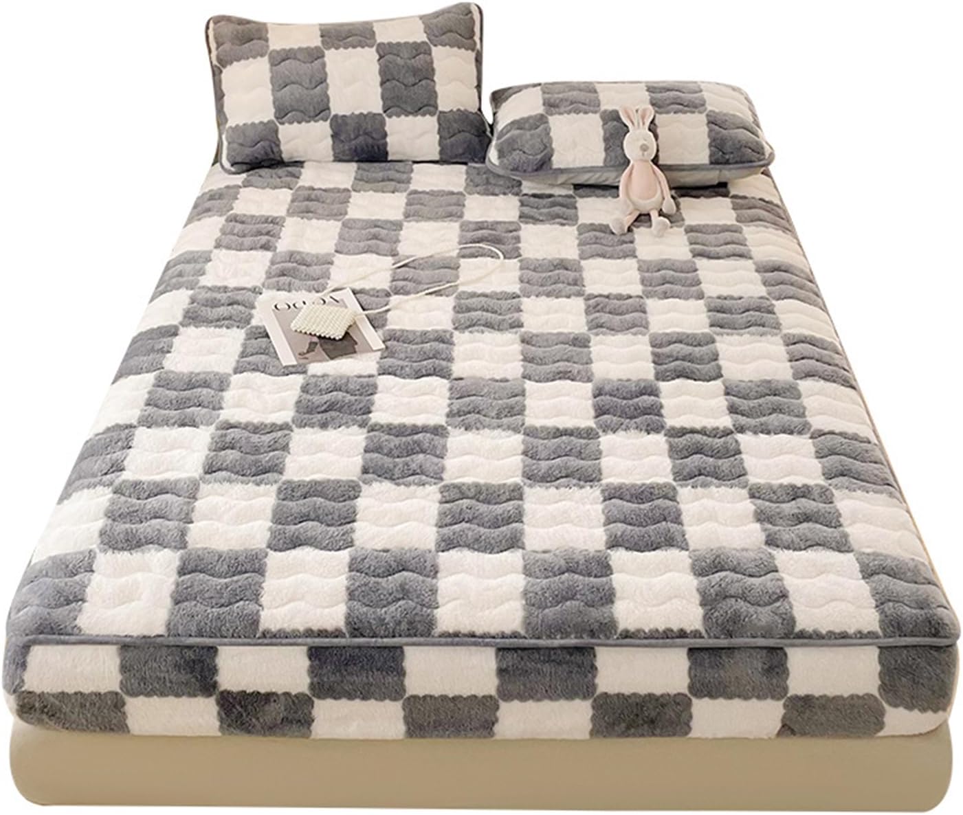 Are you still worried about the cold?You need this thermal mattress protectorThickened velvet fabricLying on it is not only comfortable and soft, but also very warmProtect your every peaceful sleepFabric:Milk velvet fabricFilling: soy fiberFeatures:warmPrinting and dyeing process: reactive printing and dyeingWhether it can be machine washed: Can be machine washedCan accommodate mattress thickness: less than 30 cmColor:black,green,grey,pinkSize:90*200cm(35*79in)120*200cm(47*79in)150*200cm(59*79in)180*200cm(71*79in)200*220cm(79*87in)Package includes:Mattress protector*1 (excluding pillowcase)notes:1. Please allow 1-3cm error due to manual measurement.2. Due to different monitors, there may be slight color differences. We hope you can understand.