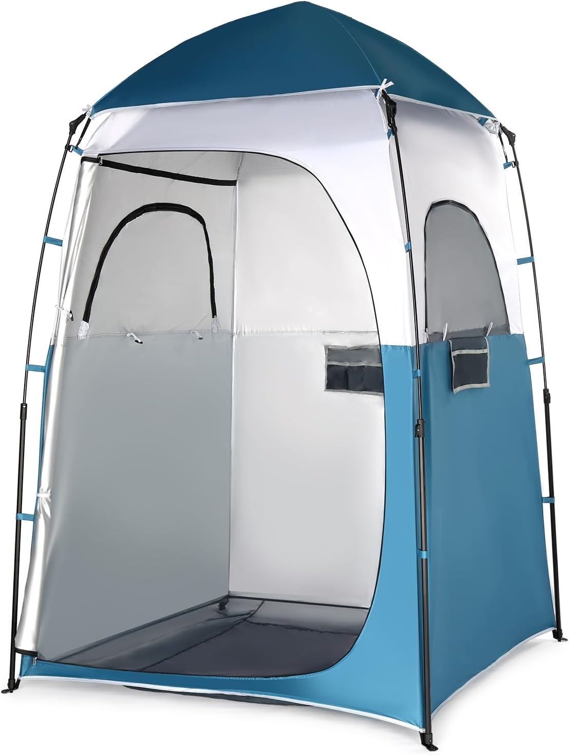 This portable privacy tent is perfect for a variety of outdoor activities including as an outdoor toilet, shower tent, changing/dressing room, camping/fishing shelter. The shower tent provides ample interior space to comfortably accommodate one person Specifications: 1. Fabric Material: 190T PU 210D Oxford cloth 2. Color: Black 3. Tent Poles: Glass Fiber 4. Pegs: Iron 5. Weight: 3KG/6.6LBS 6. Overall Dimension: (59X59X81)” / (150x150x205)CM(L x W x H) 7. Occupancy :1 Person 8. Sport Type:Camping & Hiking, Mountaineering, Hiking Packages Includes: 1 x Camping Tent (Ground nails and ropes included)