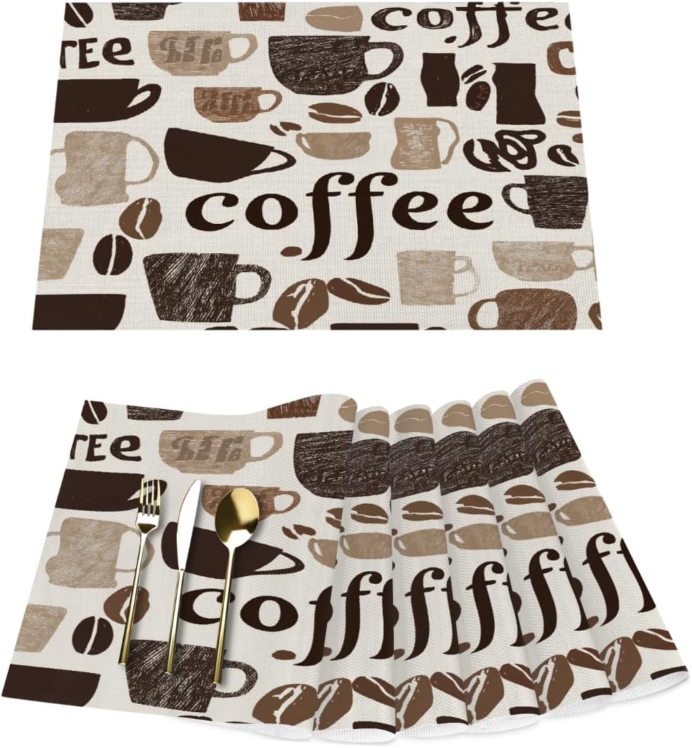 Washable Wipeable Vinyl Placemats Set of 1/4/6 for Dining TablesFEATURES- Made of high quality vinyl PVC material, durable to used- Eagerly cut craftsmanship, the edges do not hurt hands- Lunch placemats print with funny patterns to meet your personalized style- Each waterproof placemats measures 18x12inch, fitting most standard dining tables and place settings.PRACTICALIndoor place mats protect your table from scratches, also can effectively prevent oil stains from splashing on the table top. The oil stains can be easily cleaned with warm water.STYLISHHome decor kitchen and dining wipeable placemats decorate your tabletop or entryway tables well and help add a festive or party vibe. Can be used for any occasion indoors and outdoors, perfect for casual weeknight dinners, formal holiday meals, garden barbecues, patios, parties, events, they’re lightweight enough to take on the go.They’re more than just table protectors, they’re a statement piece that ties your entire dining experience together.Make you and your family enjoy the visual feast during dinner time!