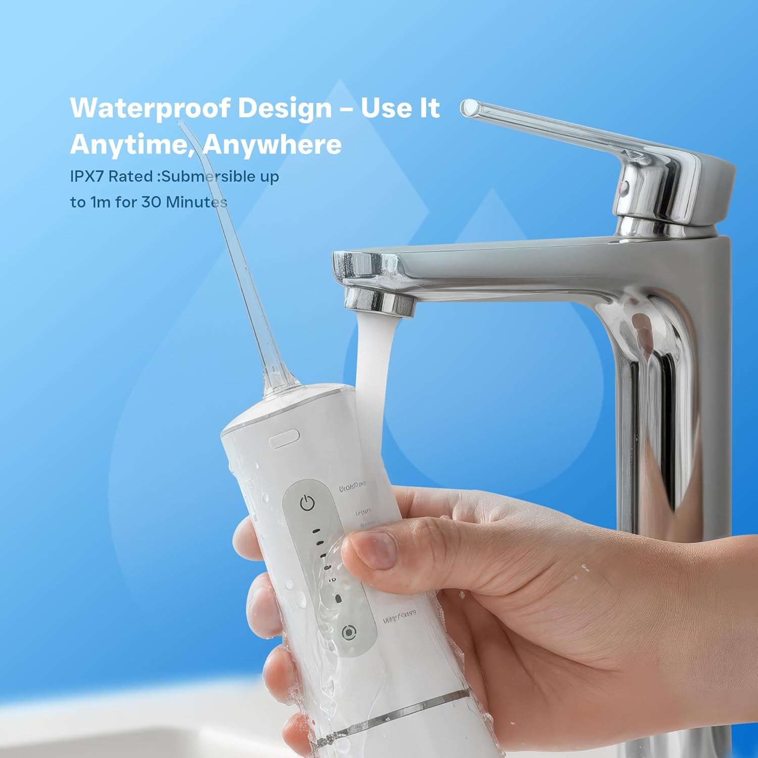 | Additional Features | Lightweight, 300 ML Detachable Water Tank, Noiseless, high-frequency pulsed , 5 operation modes, Portable, LED function indicator, exclusive patented elastic membrane water pump, Rechargeable, LED charge indicator, customizable cleaning, Rotatable Tip, automatic shutdown function, White |