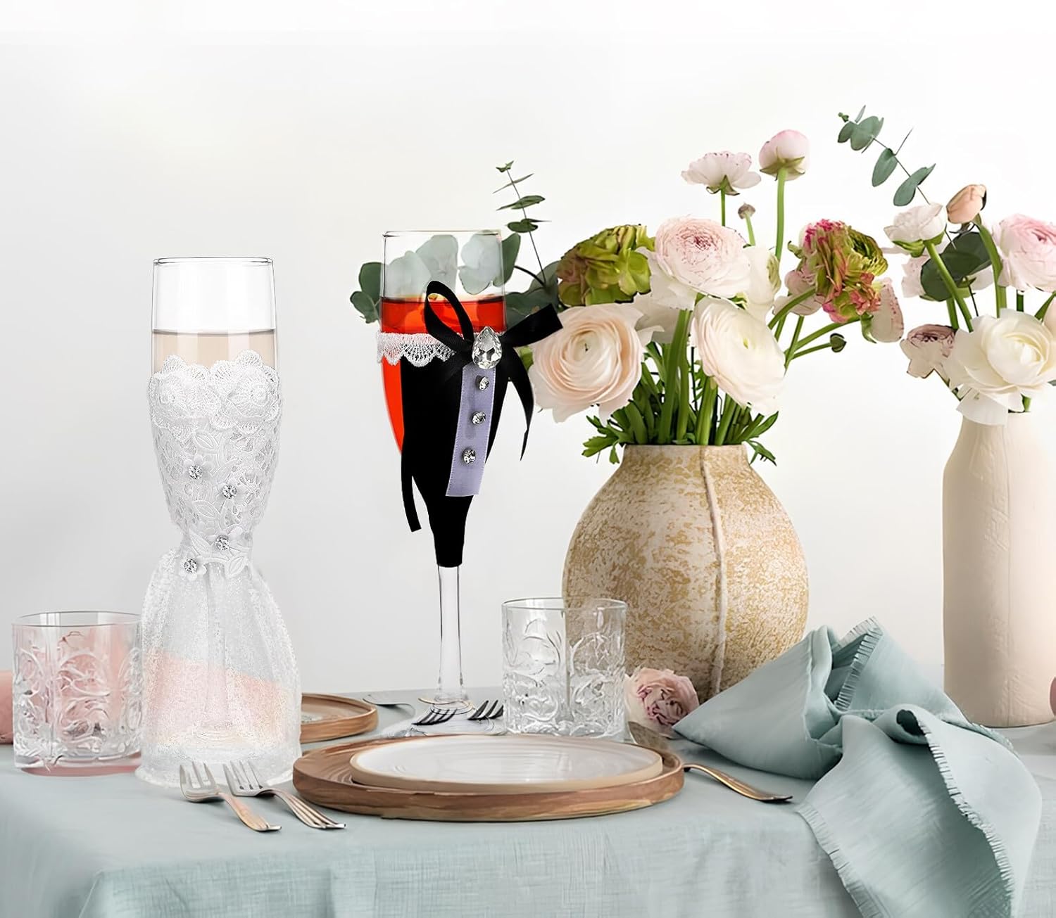 Package List 2 x wedding glasses Features -Ideal Volume: Each goblet is sized to hold just the ideal amount of beverage, ideal for toasts and celebrations during wedding receptions - Design: Crafted with wedding-themed outfits, these toasting glasses bring an elegant and romantic touch to your celebration wedding toasting glasses -Product Info: Wedding wine glass set -Multiple Uses: Ideal for wedding parties, these wedding decors also make excellent presents for anniversaries, engagements, and other special events bridal shower -Comfortable Grip: Meticulously crafted with a smooth, rounded surface, these toasting glasses for bride and groom are comfortable to hold marriage bride groom dress wine cups -Material:Glass -Sturdy Construction: Made from glass, these bride and groom cups are designed to be sturdy and resistant to damage blessing cup -Color:Assorted color -Size:22.50X6.80X5.20cm/8.84X2.67X2.04inGoods Descriptionwedding toasting glasses bride and groom Featuring beautifully crafted goblets, these glasses are ideal and groom to share their first toast as a married couple.engagement for couples Our wedding wine glass set is designed to add a touch of sophistication to your big day.glass goblet The classic design complements any wedding theme, making them a versatile and elegant choice for your celebration