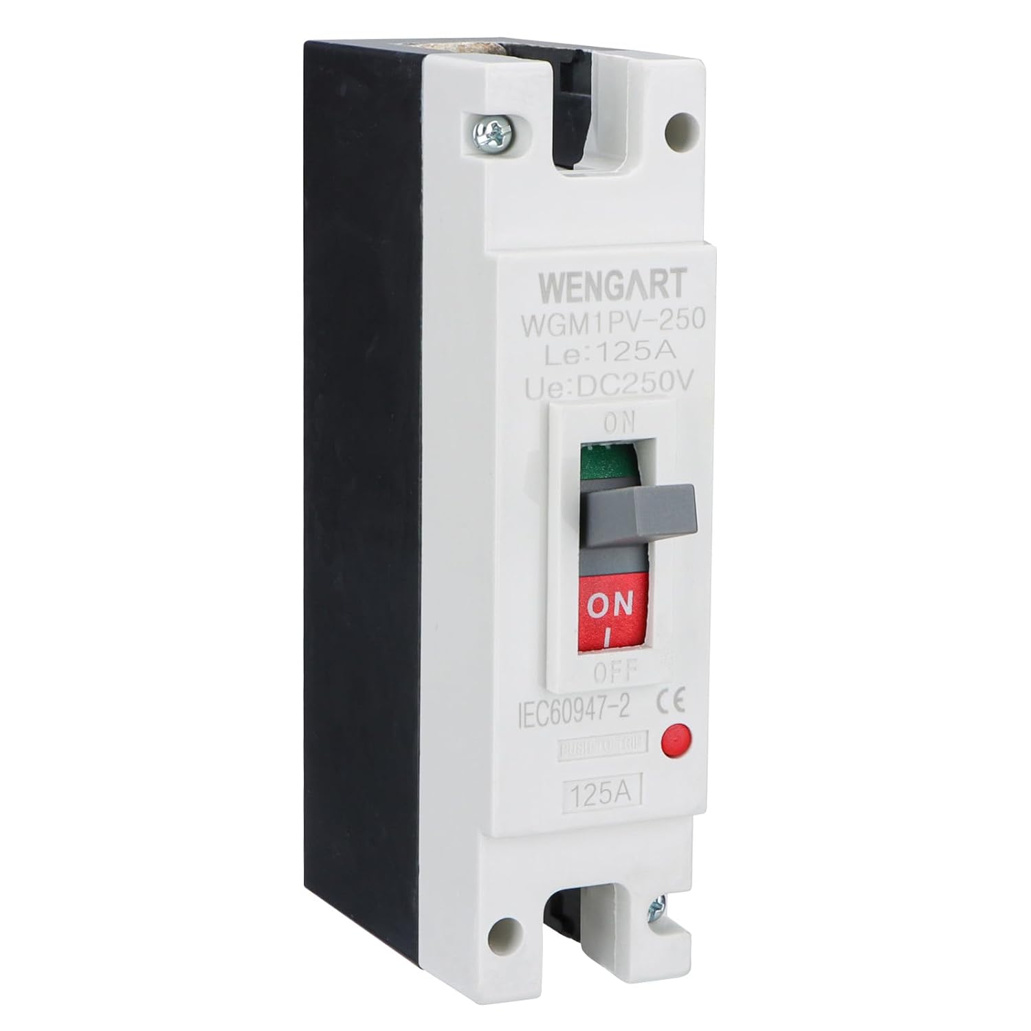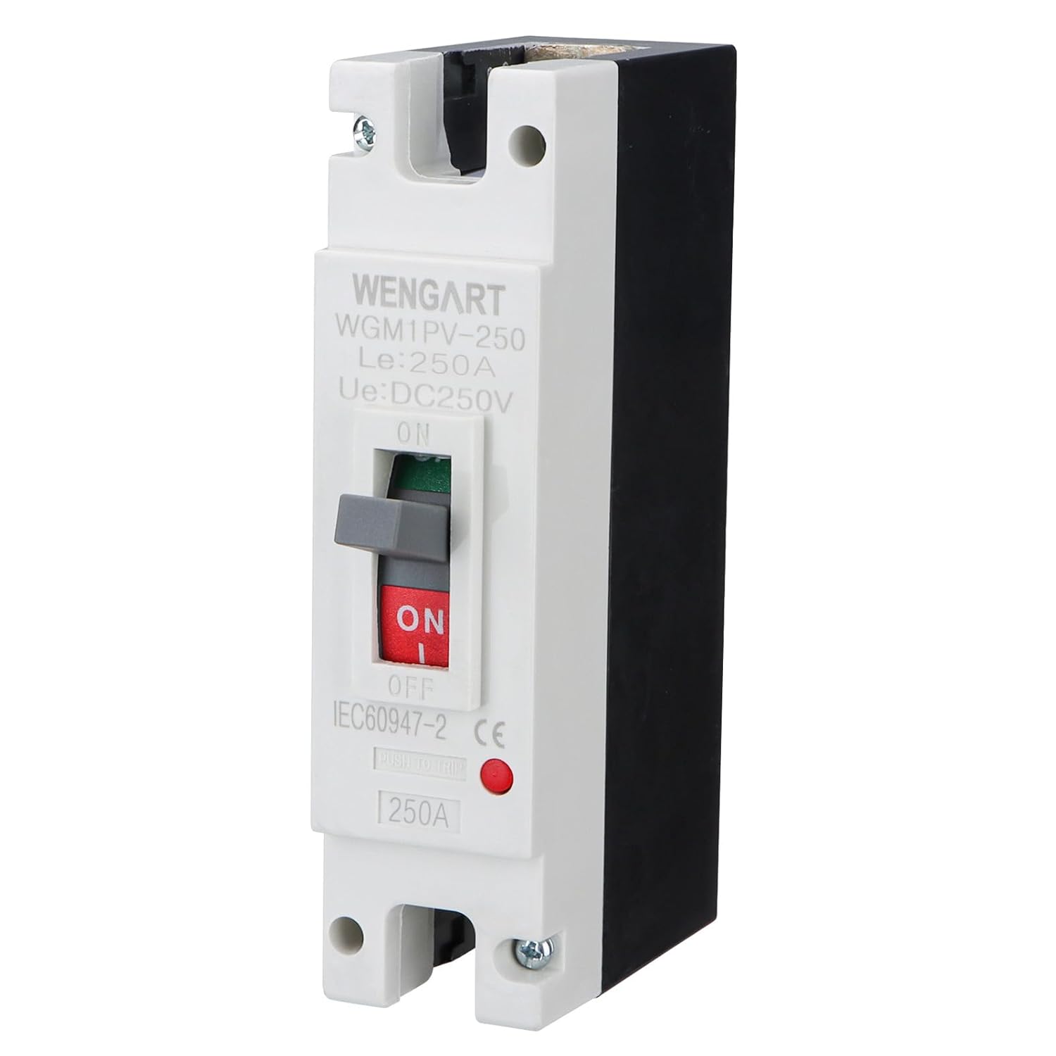 The Heavy-Weight Champion of DC System SafetyWhen you are managing a 200-Amp power flow, there is no room for "good enough." The Wengart MCCB Circuit Breaker WGM1PV-250 is a professional-grade Molded Case solution designed for the most demanding Solar Systems and energy storage grids. Rated for DC250V and below, this 1P breaker is the essential link between your high-capacity battery bank and your off-grid inverter, providing a level of safety and durability that miniature DIN-rail breakers can't match.Engineered for Thermal Stability and Longevity High-amperage DC protection requires specialized engineering to handle heat and electrical arcs. The Wengart 200A breaker utilizes silver-alloy contacts and an optimized internal geometry to keep resistance at an absolute minimum. This means less heat generated during normal operation and faster isolation during a fault. Designed for permanent surface mounting, this breaker is built to be the "Master Disconnect" that you can rely on for years of maintenance-free service.Technical SpecificationsCurrent Rating: 200 Amp (Continuous Duty)Voltage Rating: DC 250V (Works for 12V, 24V, 48V, 72V, 96V, 120V systems)Pole Configuration: 1-Pole (1P)Trip Type: Thermal-Magnetic Precision TripMounting: Surface/Backplate Mounting (Hardware included)Wire Compatibility: Optimized for 4/0 AWG and high-capacity busbarsFrequently Asked Questions (Lowering Your Return Rate)Q: Does it matter which way I wire the "+" and "-"? A: Yes! For maximum safety and arc-quenching performance, please follow the Polarity Markings on the device. We recommend installing this on the Positive leg of your battery circuit.Q: Is this too big for a standard breaker box? A: Most likely. This is a Molded Case Circuit Breaker (MCCB), which is significantly larger than a standard home breaker. Please check the dimensions in the product images to ensure you have adequate clearance in your enclosure.Q: Can this be used as a manual battery disconnect? A: Absolutely. The high-leverage toggle handle is designed for manual operation, allowing you to safely isolate your battery bank for maintenance or during system emergencies.