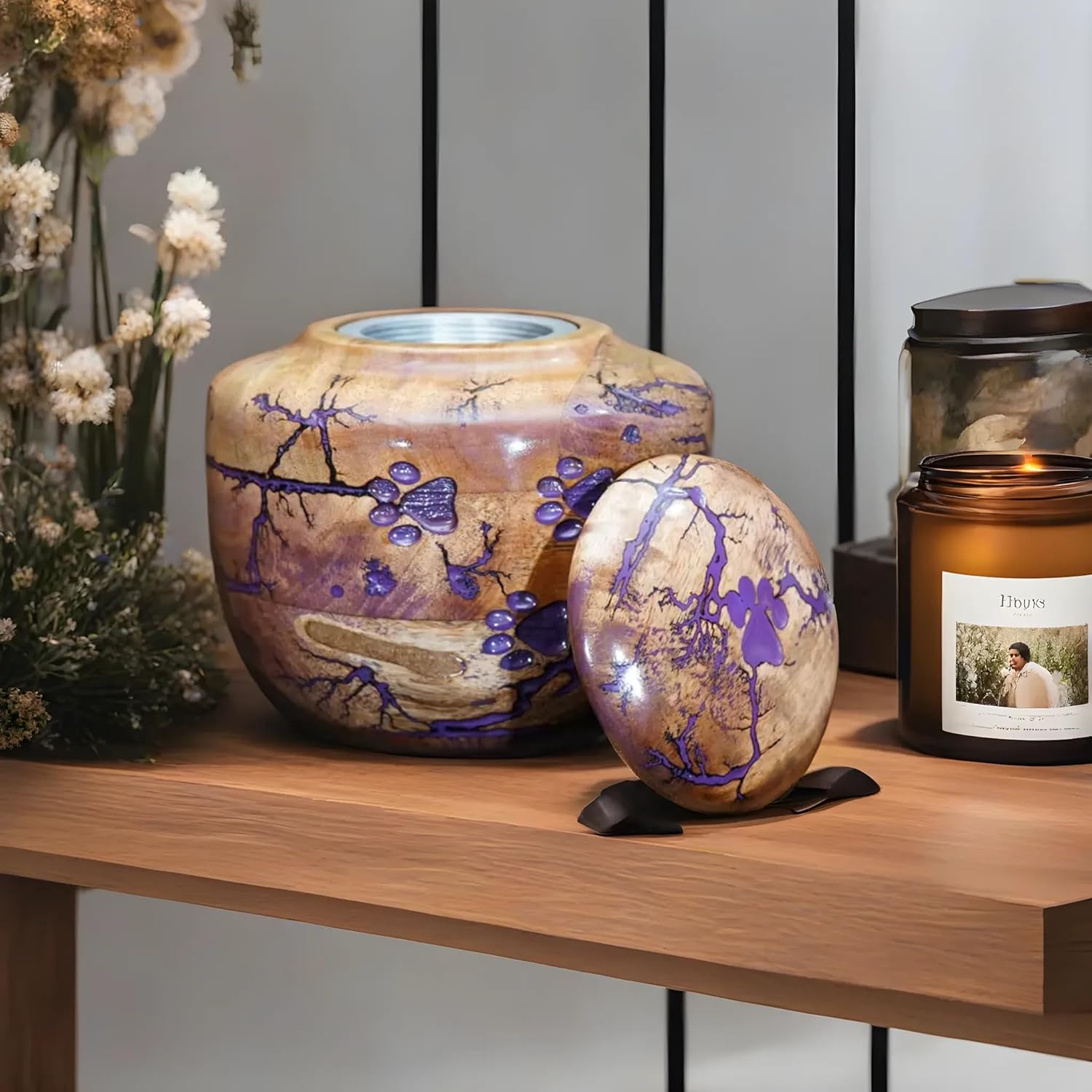 Dimensions & Their Capacity:- Keepsake: 4inches Diameter 4 Inches Height and Capacity: 10 cubic Inches suitable for a 10 lbs weight Medium: 6 inches Diameter 6 Inches Height and Capacity: 100 cubic Inches suitable for 100lbs weight Large: 7 inches Diameter 6 Inches Height and Capacity: 110 cubic Inches suitable for 110lbs weight Extra Large: 8 inches Diameter 7 Inches Height and Capacity: 130 cubic Inches suitable for 130lbs weight The Wooden Urn Cremation Urn Box for Ashes is a beautiful and timeless way to memorialize your beloved pet. Handcrafted with care, this personalized wooden urn is designed to honor your pet's memory and provide a dignified resting place for their ashes. With its classic design and high-quality materials, this wooden urn offers a lasting tribute that can be displayed with pride. Highlights: - Handcrafted: Each wooden urn is carefully crafted by skilled artisans, ensuring attention to detail and a unique, one-of-a-kind piece. - Personalized: The urn can be personalized with a custom engraving, allowing you to add your pet's name, dates, or a heartfelt message. This personal touch adds a meaningful and personal element to the urn. - Large Capacity: This urn has a generous size, allowing it to hold the ashes of larger pets comfortably. You can rest assured that your pet's remains will be accommodated securely and respectfully. Benefits: - Durable and Long-Lasting: Made from high-quality wood, this urn is built to withstand the test of time. It will keep your pet's ashes safe and protected for years to come. - Elegant Design: The wooden urn features a timeless design, combining simplicity and elegance. It serves as a beautiful reminder of your pet's life and the love you shared. - Versatile Usage: While primarily designed for pet ashes, this wooden urn can also be used to hold other special mementos or keepsakes, such as a collar, photos, or small tokens of remembrance. Usage: To use the wooden urn, simply place your pet's ashes inside through the discreet bottom opening. The secure closure ensures that the ashes will remain undisturbed. You can choose to display the urn in your home or keep it in a special place that holds significance for you and your beloved pet. Quality Assurance: We take pride in the quality and craftsmanship of our wooden urns. Each one undergoes rigorous quality checks to ensure it meets our high standards. Rest assured that your pet's ashes will be handled with the care and respect they deserve.