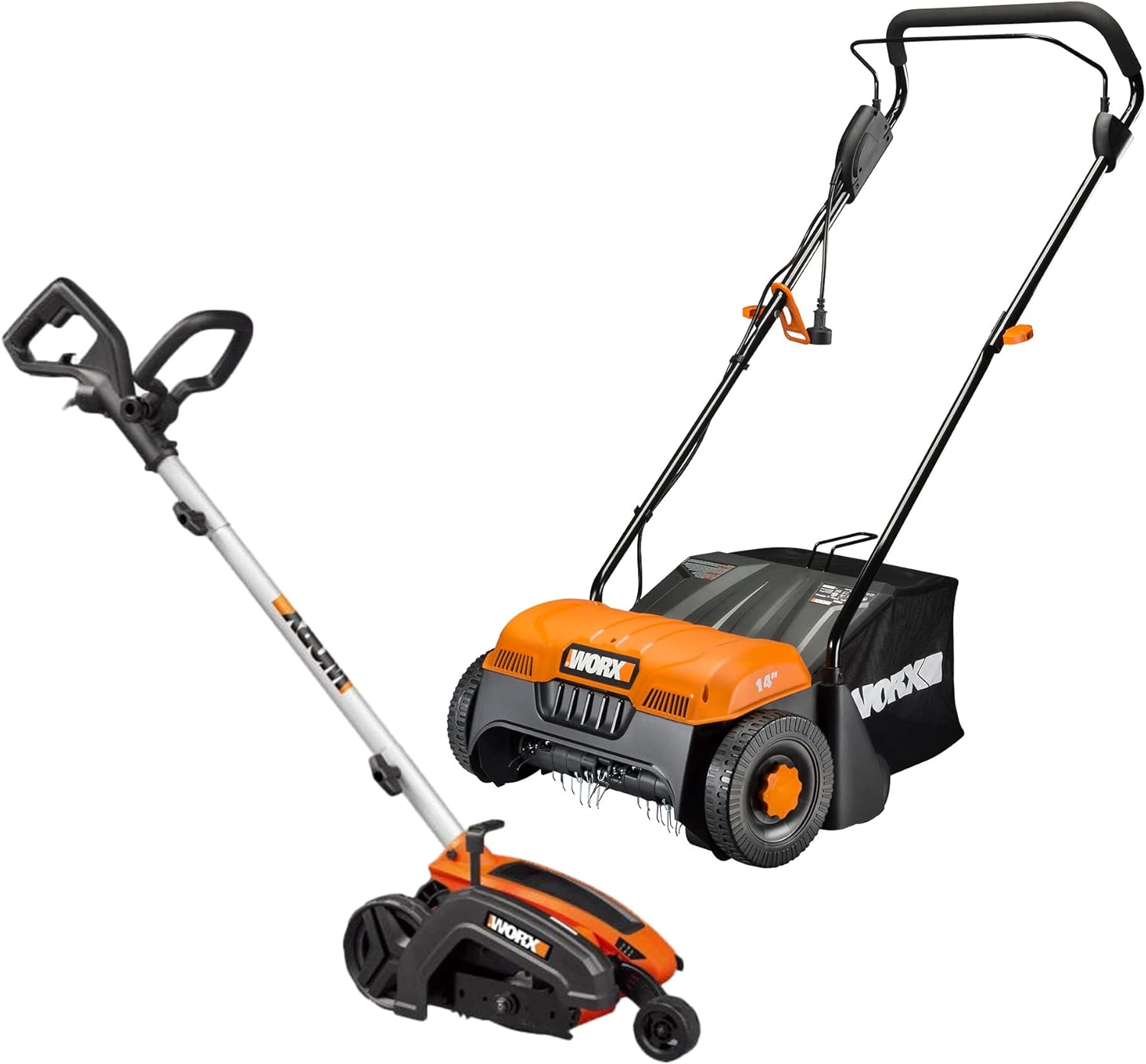 WORX WG896 12 Amp 7.5" Electric Lawn Edger & TrencherWhen you need to give some definition to your lawn elements or bury wire, the Worx 12 Amp Electric 7.5” Lawn Edger/Trencher will do the job. Powerful and easy to use at only 14 lbs, so you can easily push it along. Cleaning out clogs and replacing the blade is also easy, just make sure you always unplug it first. The blade is made of heavy-duty steel with serrated edges, which makes for clean, straight lines and has a wear indicator that shows when it needs to be replaced. It’s easy to assemble once you get it, so you’ll be out making your lawn and garden beautiful and more defined in no time.Southwire 25890002 2589SW0002 Outdoor Cord-12/3 SJTW Heavy Duty 3 Prong Extension Cord, Water Resistant Vinyl Jacket, for Commercial Use and Major Appliances, Foot, Yellow, 100 Feet, FtThe Southwire 02589SW 12/3 SJTW 100-foot vinyl outdoor extension cord features a bright yellow vinyl jacket to ensure visibility while resisting abrasions, moisture, and exposure to sunlight. This UL Listed, 3 conductor 12 gauge cord is ideal for outdoor use. An indicator light at its female end lets you know when there's power to the end of the cord. UL Rated Temp: -40 Celsius to 60 Celsius.