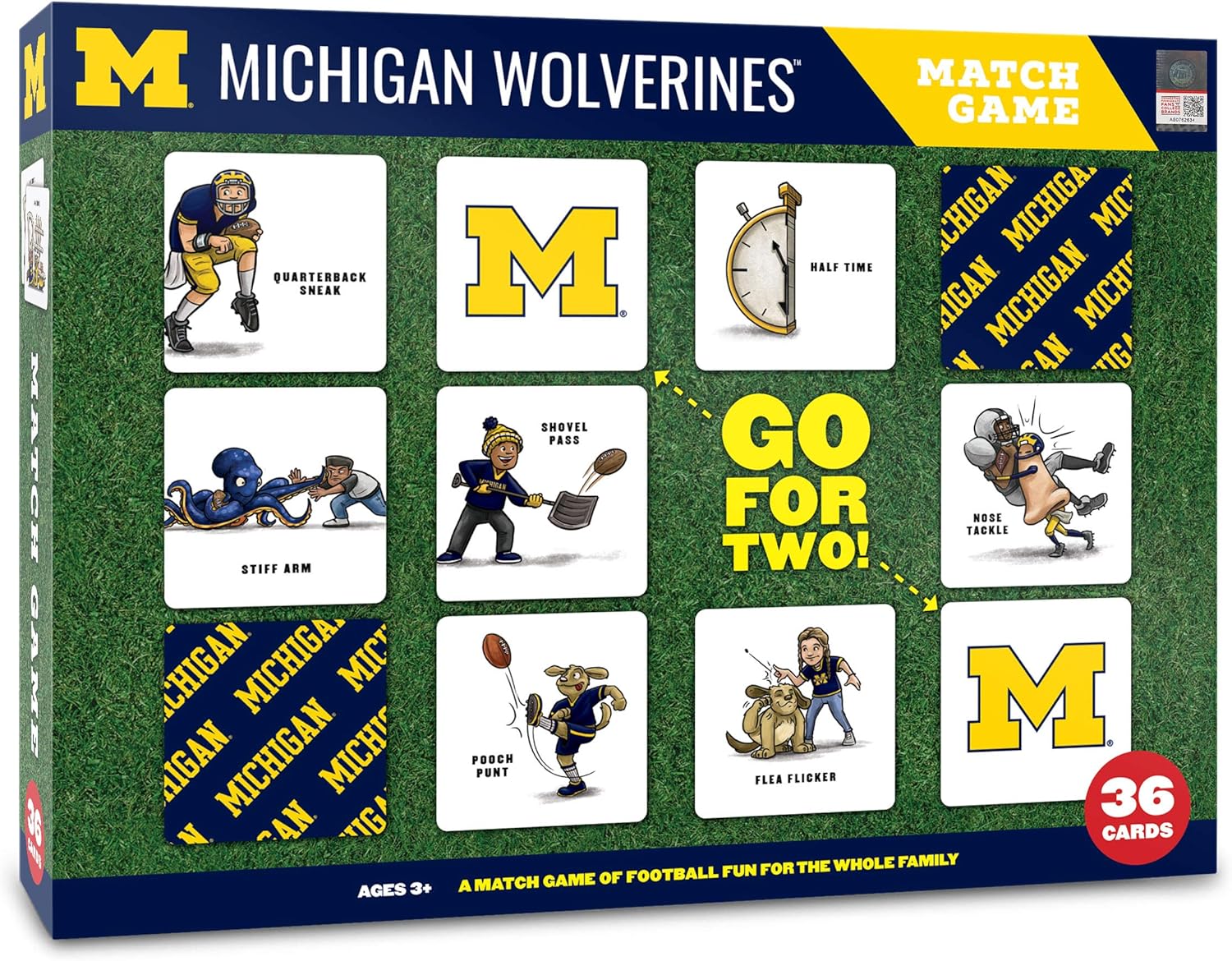 Fun has met its match! Test your memory with this classic game of mixing and matching. Common sport phrases are given a funny twist with unique one-of-a-kind illustrations featuring your favorite team. Fans of all ages can let their competitive side shine while having a laugh at the same time. Perfect for family game night!
