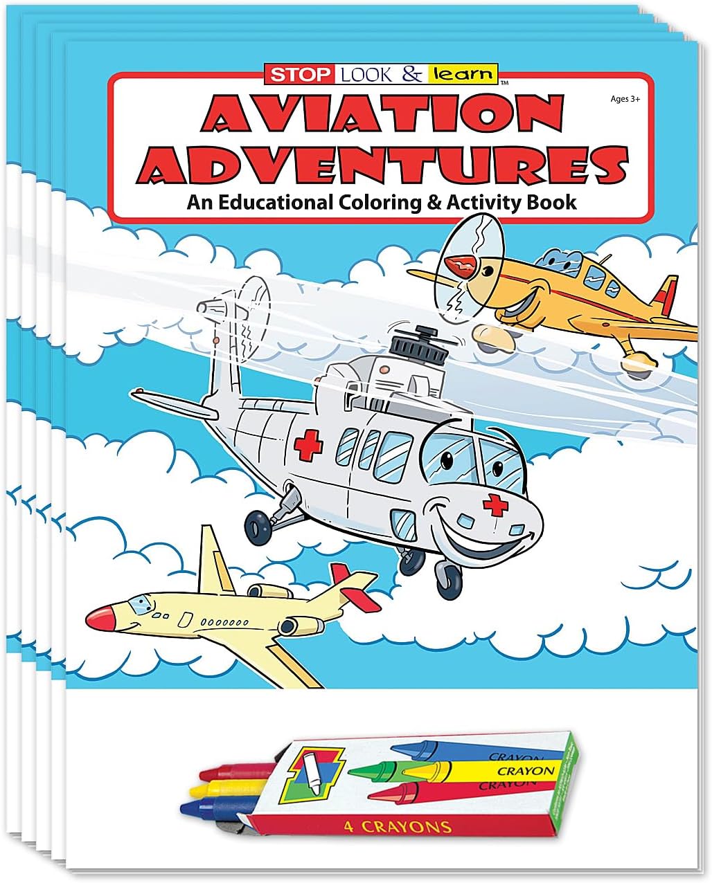 25 Coloring Books Treat young aircraft aficionados with this 25-pack of educational Aviation Adventures coloring and activity books. Each book contains a collection of 16 coloring sheets and puzzles that teach kids about different aircraft and jobs they each perform. The perfect giveaway for aviation companies, pilots, airports, and travel agents.