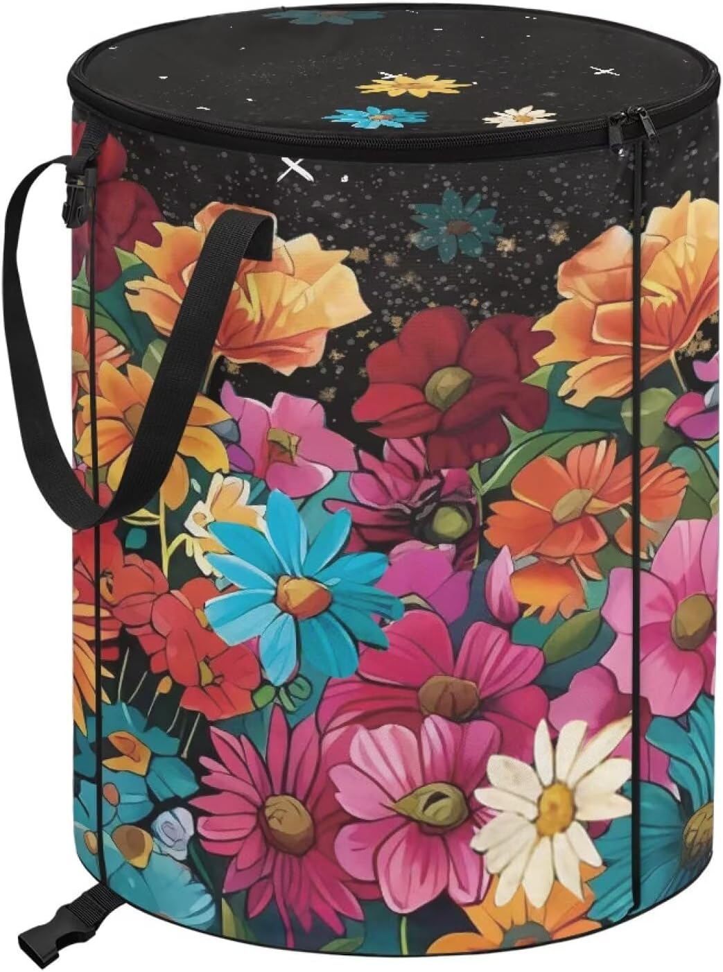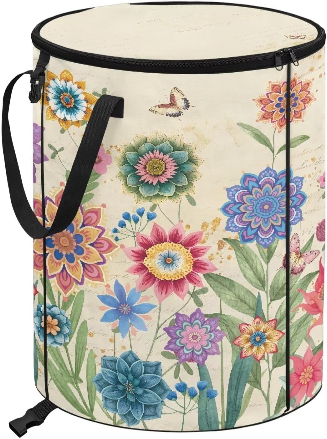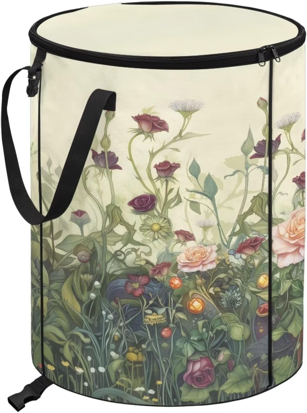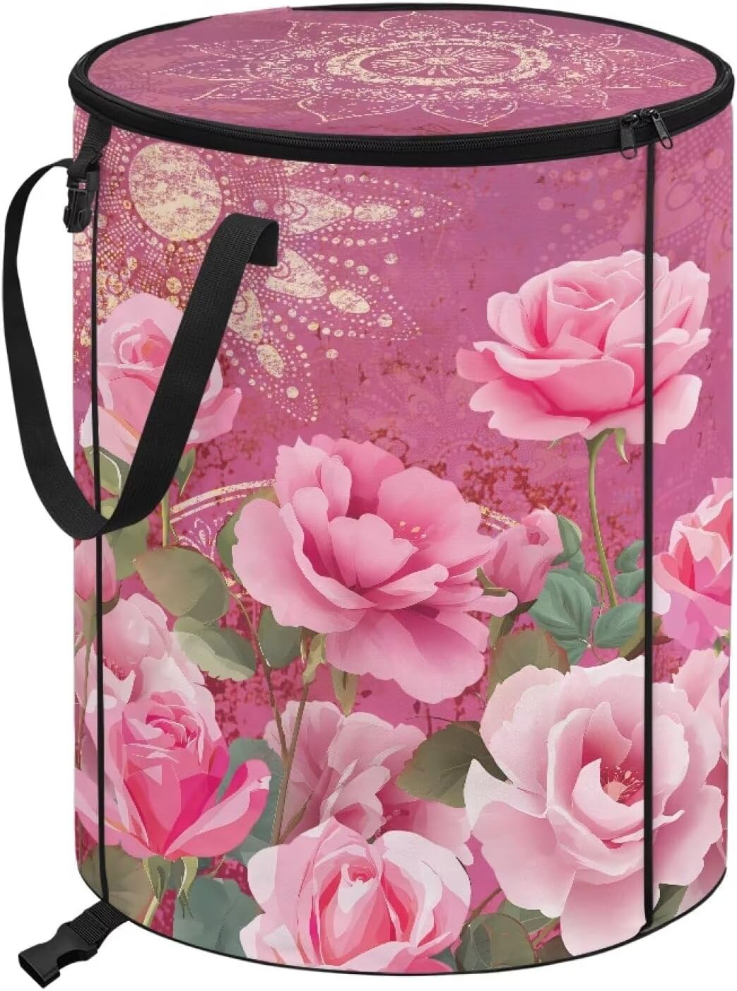 ZOUTAIRONG Floral Collapsible Trash Can Washable Garbage Bag with Lid and Handle Portable Garden Trash Bin for Collecting Party and Yard Waste, Pink Roses Print