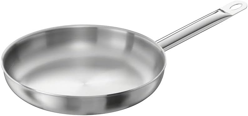 Product Description The 32 cm frying pan is ideal for preparing dishes, like steaks and fried potatoes. It is harmless to your health even at extremely high temperatures. The pan can be heated up to 260 °C to make crispy fried potatoes or a delicious and healthy vegetable stir-fry. The frying pan from the TWIN Choice series evenly distributes heat over the entire base as far as the rim, as it has an especially conductive aluminium core. This core is embedded in two layers of stainless steel, which are scratch-resistant, neutral in taste and easy to clean. Due to the use of magnetic stainless steel on the outside, this frying pan can also be used on induction hobs. The ergonomic stainless steel handle ensures easy and safe handling of the pan. You can hang up this frying pan from ZWILLING by its handle in your kitchen to keep it close to hand. Thanks to the matt finish of its surface, the pan has a very elegant look. It is ideal for much more than frying steaks though. Crispy fried potatoes, egg dishes and many other delicious dishes will be an instant success in this uncoated frying pan. Set Contains: Fry pan